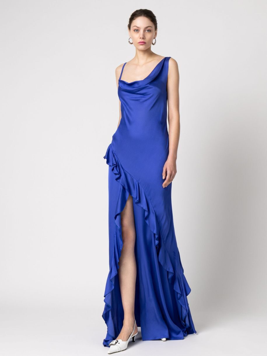 – Maxi φόρεμα με έναν ώμο και βολάν – Έχει ίσια γραμμή – Κρυφό φερμουάρ στο πίσω μέρος – Σχεδιάστηκε και παράγεται στην Ελλάδα
