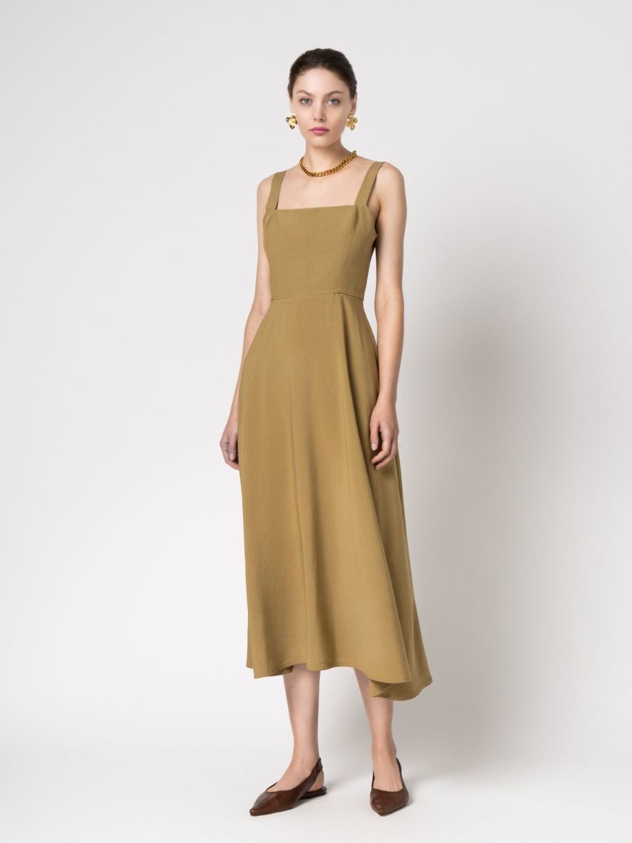 Ariana Linen-Blend Dress Olive | Forever Young The Label