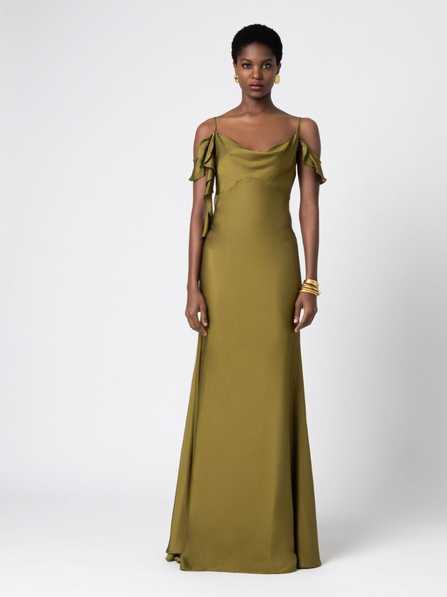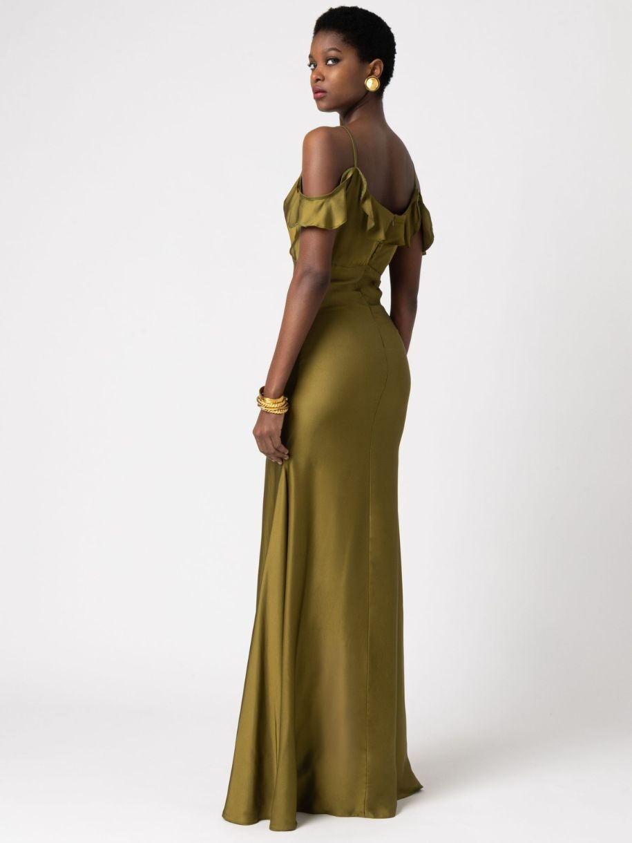– Maxi φόρεμα με βολάν – Έχει ίσια γραμμή – Κρυφό φερμουάρ στο πίσω μέρος – Σχεδιάστηκε και παράγεται στην Ελλάδα