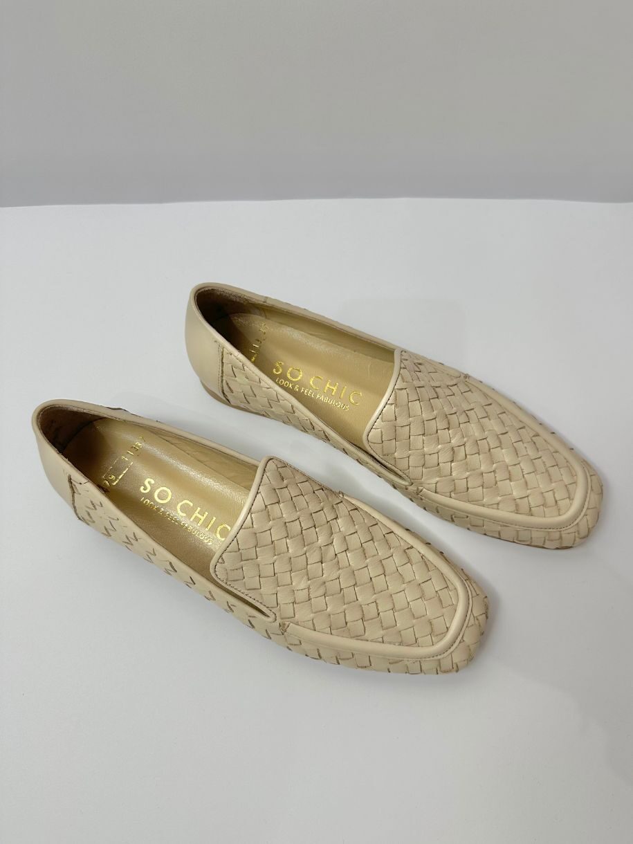 – Χειροποίητα flat loafers – Ελληνικής κατασκευής So Chic – Άνετο πάτημα – Λεπτομέρεια πλέξης στο δέρμα
