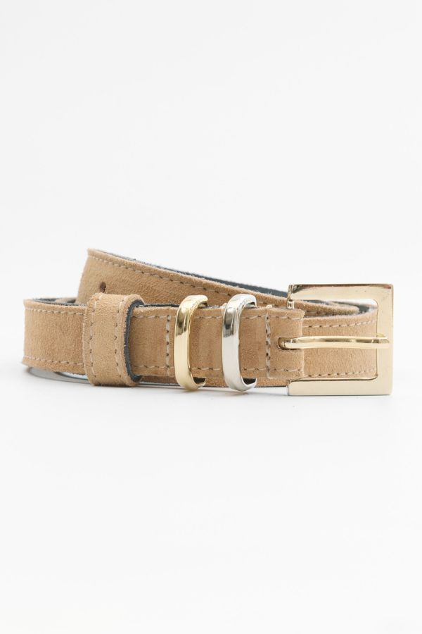 Ellis Leather Suede Belt | Beige | Leather Twist