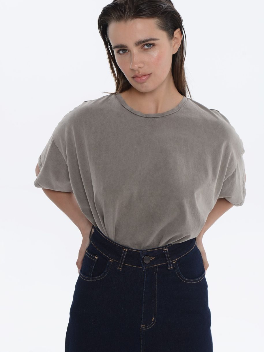 – Oversized t-shirt με κοντό μανίκι – Στρογγυλή λαιμόκοψη – Άνετη εφαρμογή – Πεσμένους ώμους – Ελληνική κατασκευή