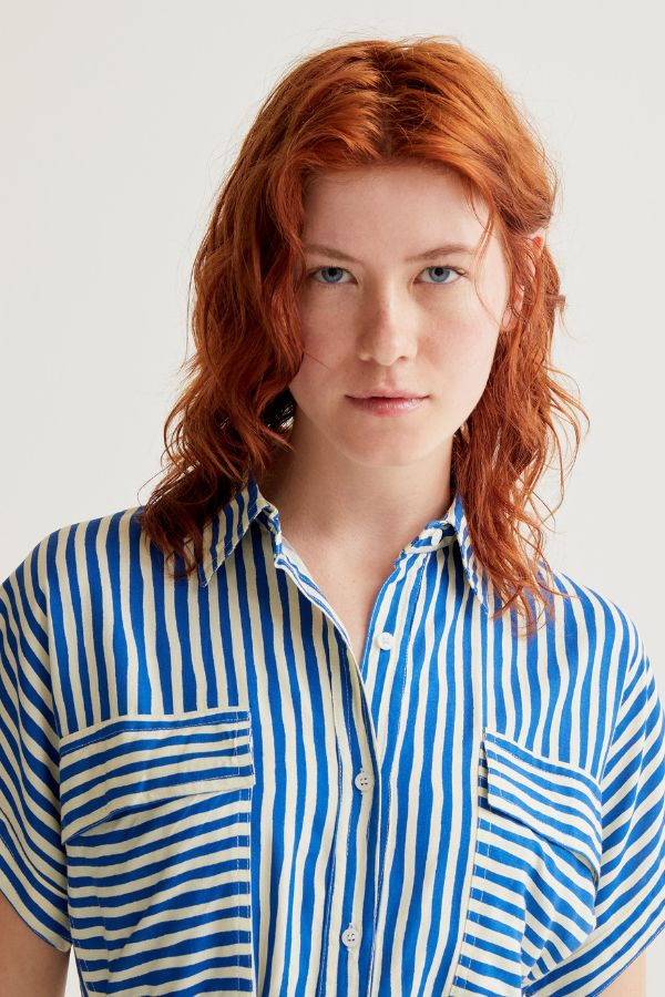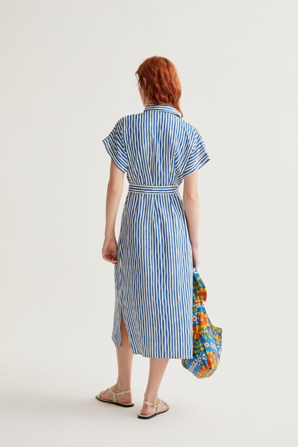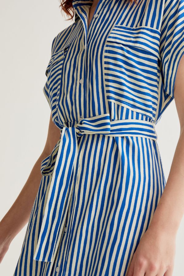 – Μidi φόρεμα κοντομάνικο – Λεπτομέρεια με πολλές τσέπες – Κουμπώνει με κουμπιά και ζώνη – Ύφασμα 100% Viscose