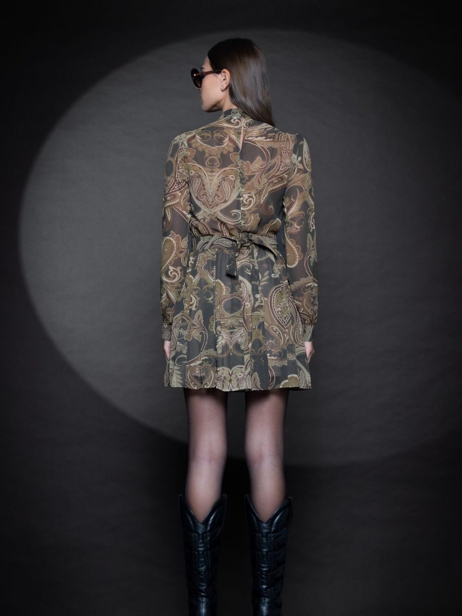 – Mini φόρεμα με υφή chiffon – Προσαρμόζει με ζώνη στη μέση – Φούστα πλήρως φοδραρισμένη – Σχεδιασμένο και κατασκευασμένο στην Ελλάδα