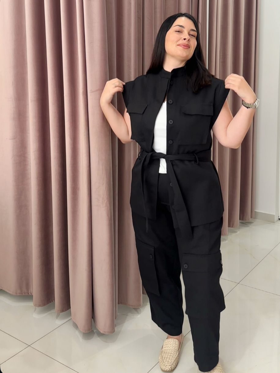 – Το σακάκι κουμπώνει με κουμπιά και ζώνη